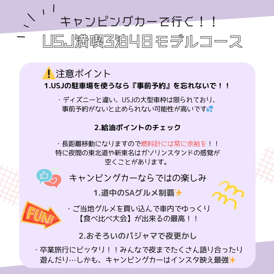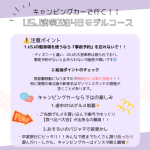 キャンピングカーで行く!!テーマパーク卒業旅行🏫🌸おすすめモデルコース 第二弾🌸