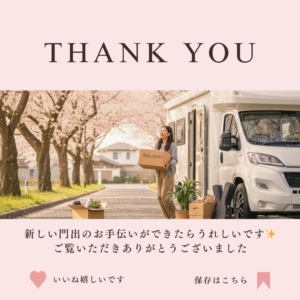 新しい門出にキャンピングカーでお引越しも視野に入れて置いて頂けると、引っ越し難民にならずに済むかと思います🥰